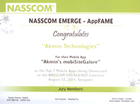 | Akmin's mobiSiteGalore one of the winners of NASSCOM EMERGE AppFAME 2011 |
